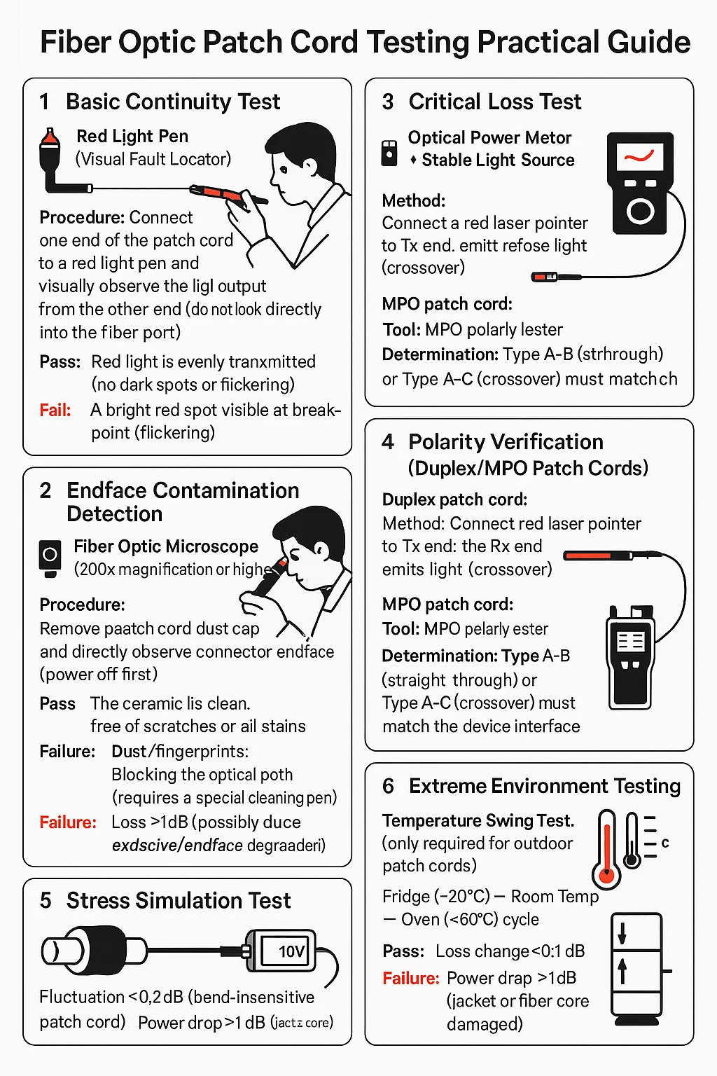 Pass: Fluctuation ≤0.2DB (flectere-insensitive panni rudis funis). Defectum: Power Iacta> 1DB (Jacket aut fibra core laedantur).